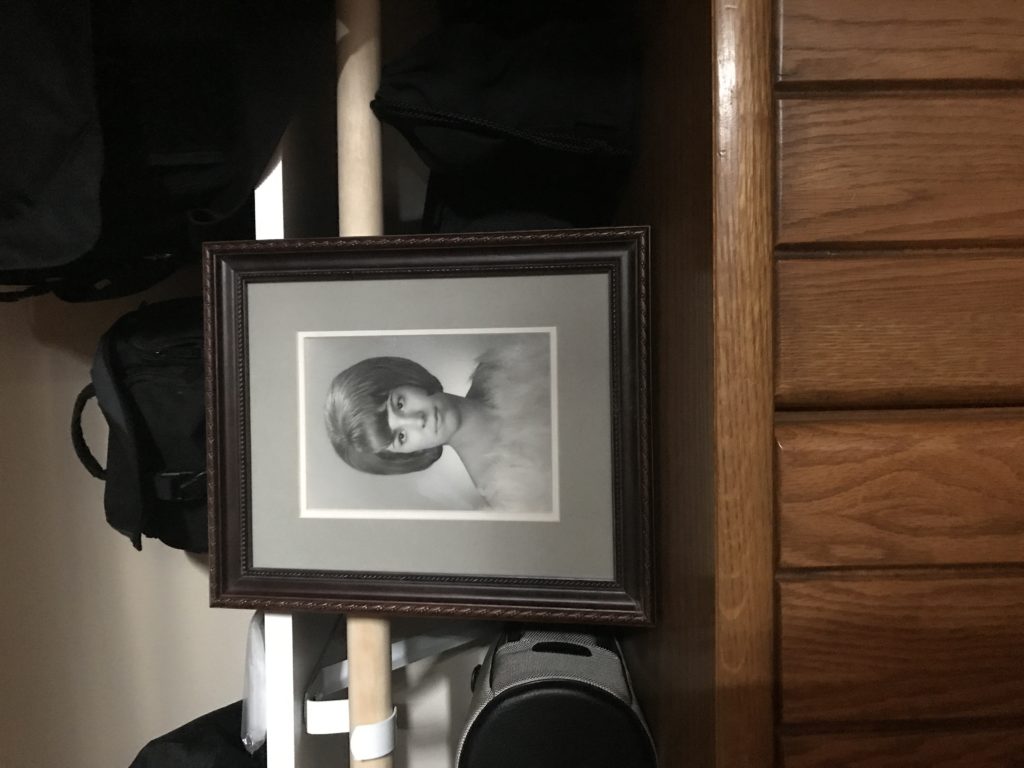 I am not sure why my hubby has decided to put my senior photo up on his dresser. Can’t believe we thought feathers were cool those days. I hate having my picture taken even today. That seems to be common with some photographers. I would prefer being on the other side of the camera. At least this one is in our walk-in closet.