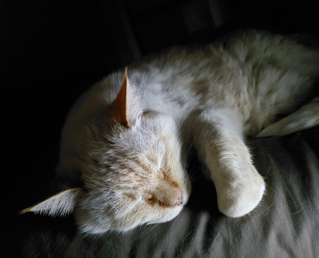 I discovered that my Samsung does pretty good at night photography. A cooperative subject and the iPhone screen light gave some pretty good results. A way to pass the time on this sleepless stormy night.
