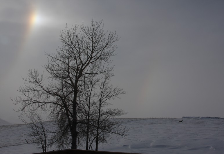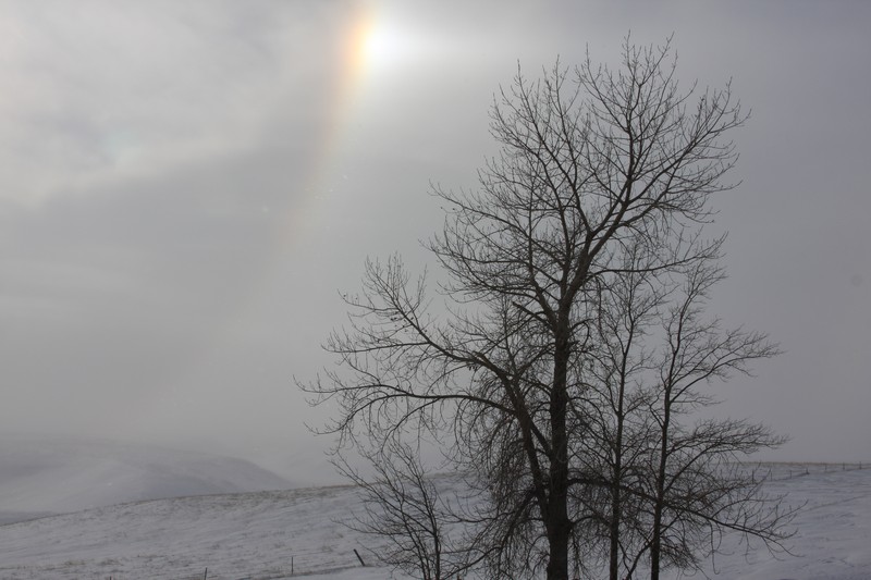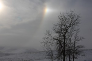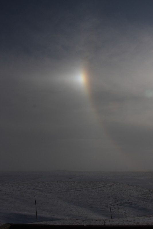 We had blizzard conditions for several hours today. Once when the wind died down, there were really cool “dundogs” that appeared around the sun. Couldn’t help but grab the camera and open that sliding door. All were shot manual at ISO 100, F/11, and !/320 to 1/1000s. The snow moved right back in shortly so I had to shoot fast and furious. Here are a few that I got.