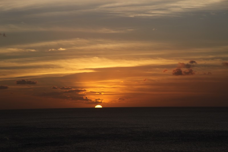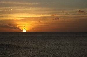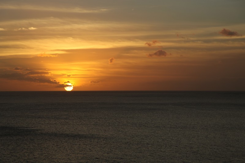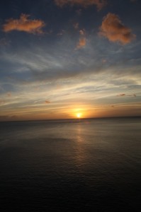 We found out bright and early this am that we would not be stopping to go ashore in Antiqua because of the high waves. It is just not safe to take a ship of this size into that port, I guess. There are over 3000 passengers and 1000 crew onboard. A small town!! That proves to be a rather interesting problem in the days to come. I am posting a photo that I took of our ship when we were first getting on. There are also some photos of the sea and a sunset. I was so disappointed in the sunsets and sunrises in the Caribbean. There was no color like in Montana!