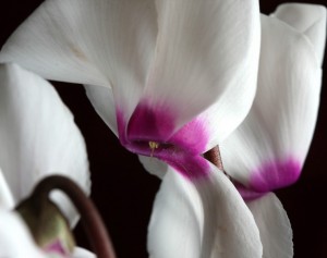 Thursday, May 21 - In honor of my dad, I am posting some cyclamen photos that I took today. They are a challenge to take, as they are very “shy” and don’t pose very well. Aimee and I are heading up to the ranch with a lasagna lunch and sour cream raisin pie which are Dad’s favorites. I feel so lucky to still have my dad to celebrate with. Aimee had a birthday this last week too, so it is a double birthday party.
