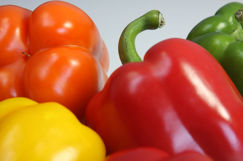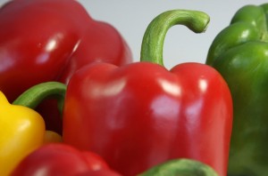 Sunday, May 3 – My final food photography assignment was a doozy. We had to chose two photos from books, magazines, calendars, etc. and then try to duplicate them. Wow, that is not as easy as it sounds. You don’t realize how much a photographer considers position and light when they do their setup. We were told to pick simple subjects, which I thought I had. I picked one that showed raspberries and mandarins and they were sprinkled with sugar. Well, you can not sprinkle sugar on fruit and not have it bleed. Even when I did it right as I shot, I had a problem. I would dab up the juice and shoot on. They turned out great and looked exactly like the original photo I picked. I was surprised, as I have no professional lighting system. I just used my refectors and a little diffused back light and a north facing window. Even Walter was impressed how well they matched the “real” photo. I shot a couple of macro shots at the same time and one of those was posted for my Day 122 photo. I had also purchased the ingredients to do two more setups (one for a backup, in case something didn’t work). One was chocolate pudding which turned out to be the biggest challenge of all. I ended up using mirrors to reflect, in addition to my silver reflector. My pudding wasn’t as smooth as the original, but everything else looked really close. I found a metal bowl that matched what they had used as that contrast outside the pudding bowl. I had to use a can to sit the pudding on to elevate it to the right height. My highlights could be better too. I found it wasn’t so easy to put a dollop of Cool Whip on just so. You have to do some prep to the top of the CW before you even scoop it out for it to look right. Holy cow, what a challenge. For the final one I chose a grouping of various colored peppers. The peppers available at the store were not as big and nice as the center one in the original photo. But I made do and am very pleased at how it turned out. I even have that little bit of green stem at the bottom that the pro had used. They are really close to being a match. From the three shoots I did ( pudding, berries and peppers), I had to chose the two I liked best and then recreate in some way to my liking. It was hard deciding between the berries (I already had my recreated macro there) and the peppers. I had purchased an orange pepper (go figure!!) and decided to add it to the mix and to turn it upside down for some added texture. I like how the photo turned out with a little changing around. So now it is on the Capturing the Beauty of Flowers class.