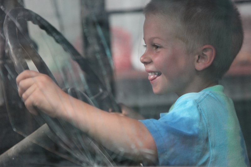 Friday, September 11 – Marilynn and Katie, best buddies, having fun together. The second photo is not the best, as the lighting in that building is horrid. But I still like the expressions of pure joy on those two little faces. I used the first photo for class and the instructor had lots of praise for it. It is so smoky out today. There is a big wildfire burning by Holter Lake. It started at a campground/RV park and burned some trailers there. Looks like a nasty one. The last time I went to Helena it was so dry there. I am sure that is not helping the situation. I am off to move some cows this morning, as the fence finally got fixed so they will stay in. My sis and I spent yesterday cleaning out a shed full of old ‘stuff’ for Mom and Dad. We had a whole pickup load to haul to the dump. I came home with some treasures; an antique (my mom’s) baby carriage and my mom’s red wagon. Both will be great for photo props.