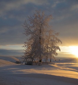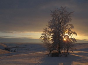 Thursday, December 25 – It is a glorious Christmas Day in Montana. The sun is shining and it makes a person feel glad to be alive. I took these of my favorite trees in front of my house just at sunset. I really need to put together a seasons series of this location. I was thrilled that Tiffany remembered when we got those trees and how much they have grown. Make sure to click on the photos to enlarge them.  Merry Christmas to all!