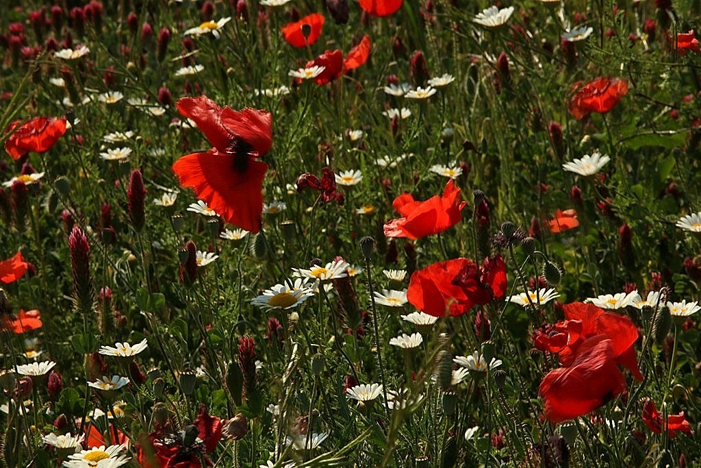 Monday, June 13- Walter tells me that poppies are a terrible weed in Europe and I sure can see that now. They were everywhere and right out in the middle of fields of wheat, oats and soybeans. Here is a shot of one of the fields we visited for our shots and a closer shot of where the poppies were growing. Obviously they must have sprayed for them in the wheat field, as you can see on the left side of the road. It looks like they raise alot of green manure fields, especially using oats, and that is where these ones were growing on the right side of the road. From a distance you can see the red/orange glow of the poppies and that is what we chased for hours.