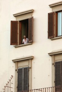 Tuesday, June 14 – I shot this one right in front of the Duoma. This man obviously was taking a quick look at what the crowds were doing. Imagine living right by that fabulous church.
