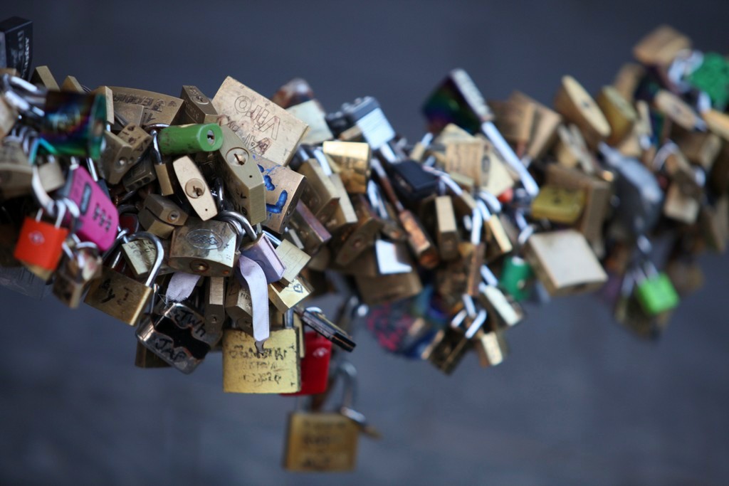 Sunday, June 12 – A very popular thing to do, along that bridge you have seen in several of my shots, is to put a padlock, inscribed with names,  on any available space and lock it symbolizing you are bound to your loved one for life. This was just one little section of them along the bridge. I wonder how many of the couples that are represented by these locks are still together. This was a very hard shot to take, as a very busy street was in front and you had to snap a zoomed shot between vehicles.
