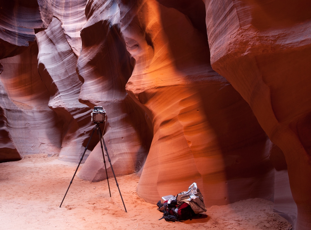 Tuesday, November 15 – My favorite spot in the canyon to capture a shot and someone beat me to it. There was a photographer from Europe who was doing some documentary shooting in the canyon and had his big camera set on a timed exposure right where I wanted to shoot. There was no time to wait until he was through, so I shot this including his rig and all. I think it tells alot about why photographers are drawn here.