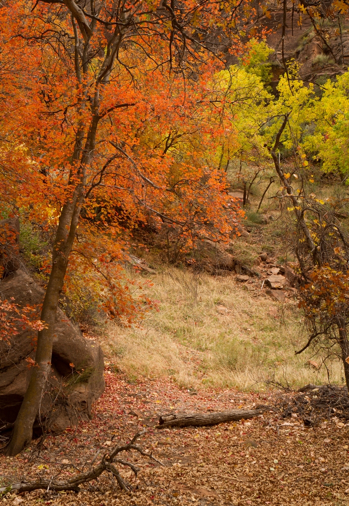 Monday, November 14 – Everywhere I looked in Zion there were these beautiful fall colors surrounded by gorgeous rock formations. There were certainly lots of other people that knew this is where you find fall colors, as the park was plenty busy all week. None of the traditional shots though for this workshop, as our instructors took us to their favorites, that were not quite as busy.