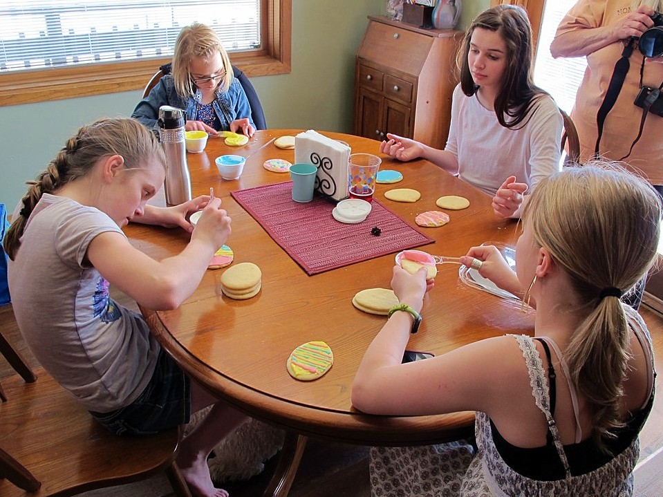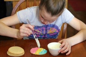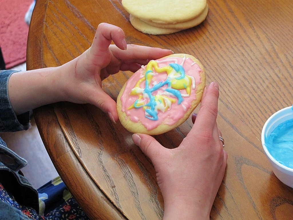 Tuesday, April 10 – I bought an Easter cookie decorating set with my Bountiful Baskets. The girls had so much fun putting the finishing touches on them and were they ever yummy too.