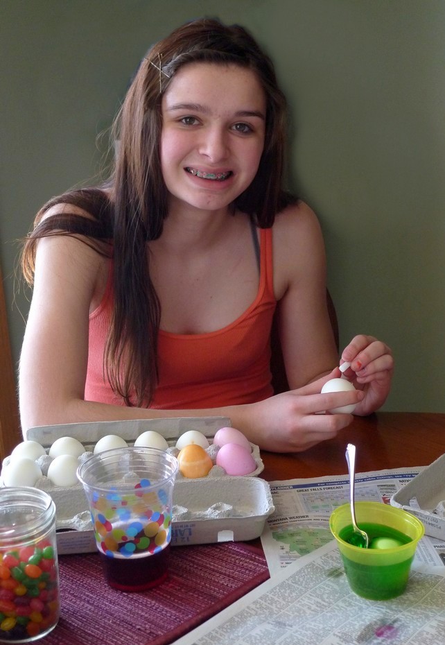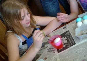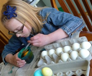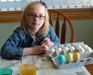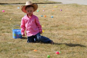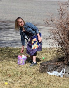 Thursday, April 12 – Emma knows how to find those best eggs. I think she got one of the big itunes cards.