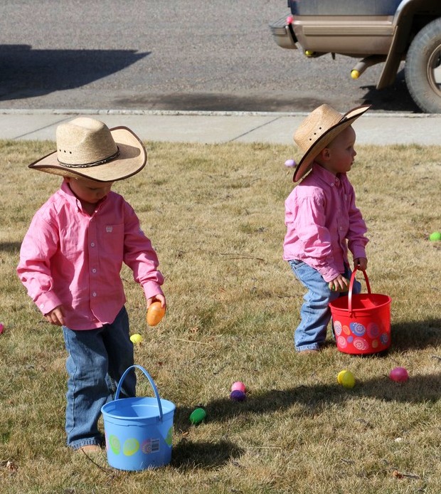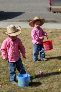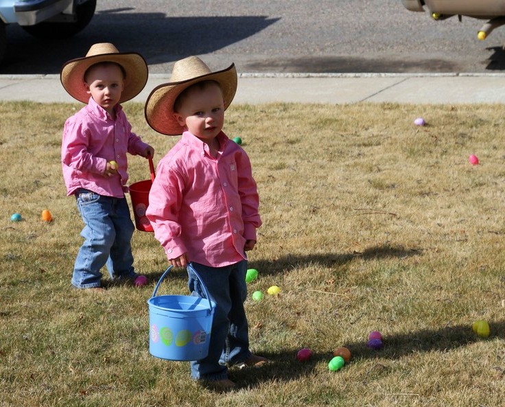 Friday, April 13 – Those twin grandsons of mine know how to hunt eggs. They had a practice session last week at their church and they are very ready to roll today. I do believe that someone found one of those special eggs with the itunes card inside.