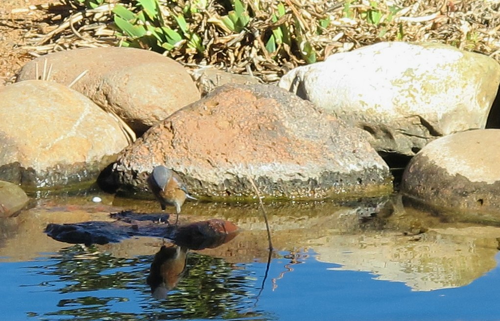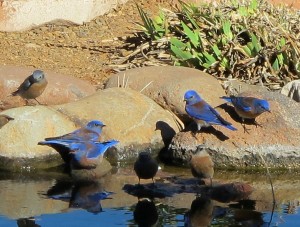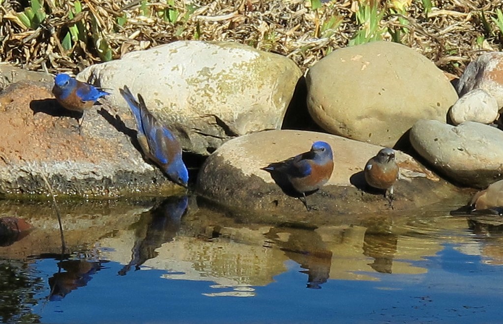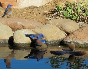 Saturday, March 3 – Walter has enjoyed the flock of Bluebirds that visit the water fixture daily for a bath. He shot these and is very proud of them.