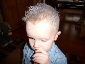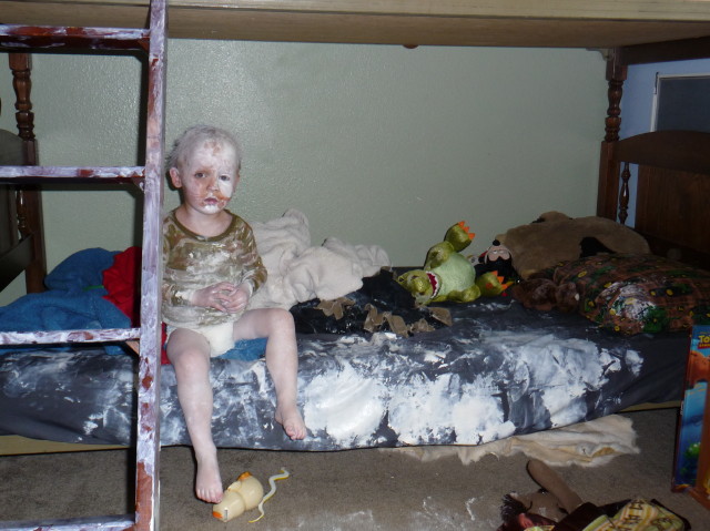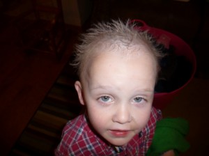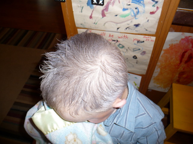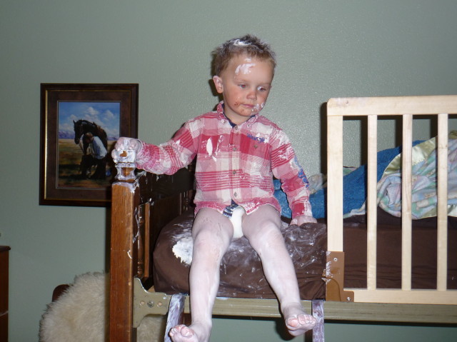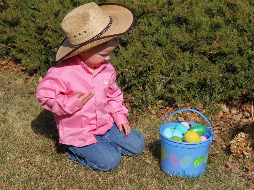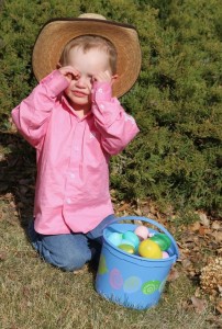 Friday, May 25 – Weatherbug is calling for a winter storm warning from tonight through Sunday. Yuk!! I was copying pics from Easter this morning and discovered a few that I didn’t put up yet. So here goes with Gage.He looks very guilty of something, doesn’t he?