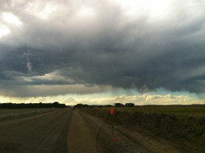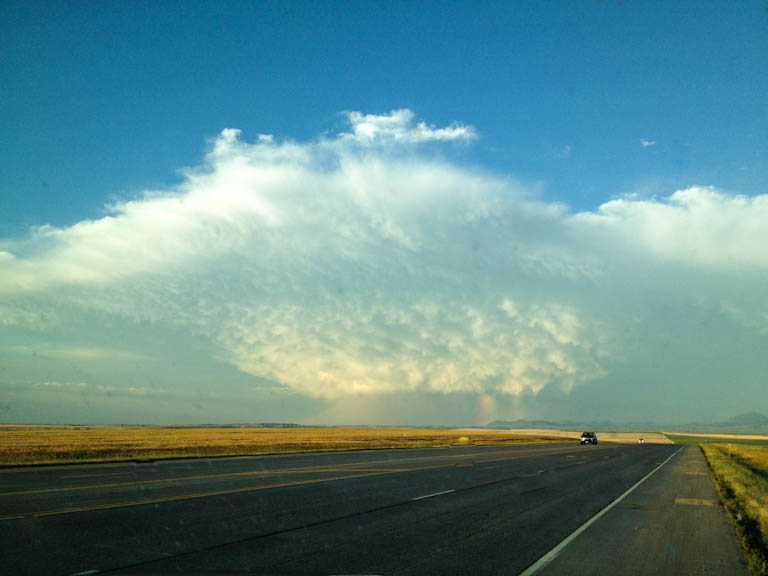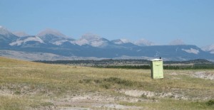 Thursday, August 9 – Just had to get a shot of the only facilities in the area. That is the front range of the Rockies behind and there is a swampy area close by that is home to lots of grizzly bears. This is the Ear Mountain area. We saw several fires burning in both the forest and on the grasslands.