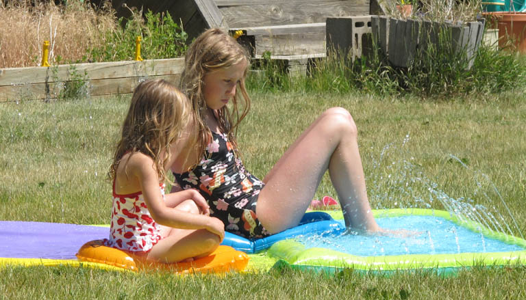 Wednesday, July 18 – Marilynn came to spend the day with her cousins and brought her brand new slip n slide along. What a great time they had. It has been hotter than Hades lately and the water fun was very welcomed. Lily had quite the time learning how to slide instead of run on the slip n slide.