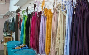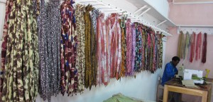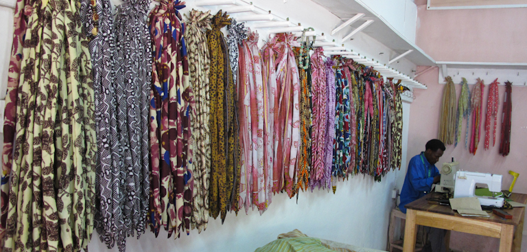 Here are a couple pics I took at Shanga that show the material that they use to make the glass bead and silk necklaces. You can see one of the resident artists at a sewing machine in the background. Inspiring place and fun place to visit.