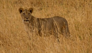 This female lion or young male was traveling with a whole pride which we so enjoyed viewing. It was our first  of many lion sightings.