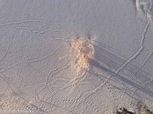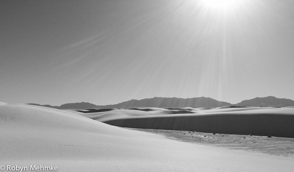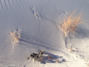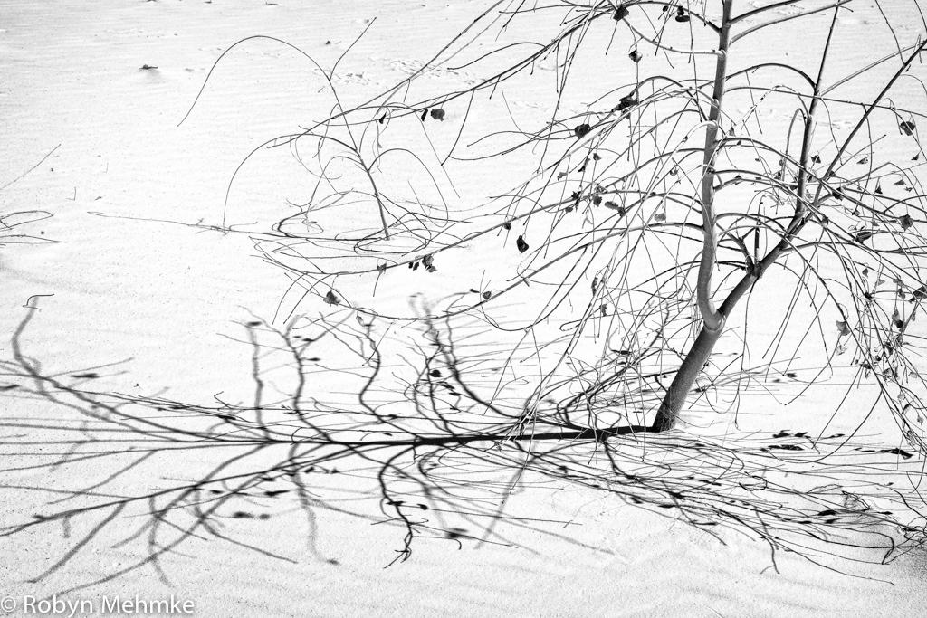 This is the photo that I chose to print at Craig’s studio. We each picked  a selection of our photos to make a slide show for the group and then chose one photo that he printed up on his humongous Epson printer for each of us. I had a real time picking which to print. Craig loves to shoot in black and white and had me turn my photo into a monochromatic in Photoshop. I will put up the color version tomorrow and you can decide which you prefer. This is the top of a cottonwood tree growing up through a sand dune. I know it looks like a small tree, but it extends down a good 20 feet or more through the dune. I’m off to help Mom and Dad celebrate their 87th wedding anniversary a few days early.