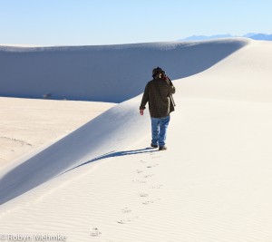Wouldn’t it be fun to be a child again, at times? This is what the children do at White Sands, especially when it is spring break in New Mexico. Imagine getting to use your “flying saucer” to slide down hills of warm, white stuff. They sell the sleds in the gift shop and as you can see, they are everywhere. Â I kept thinking it would be so much fun for each and every one of my grandkiddos to enjoy this place.