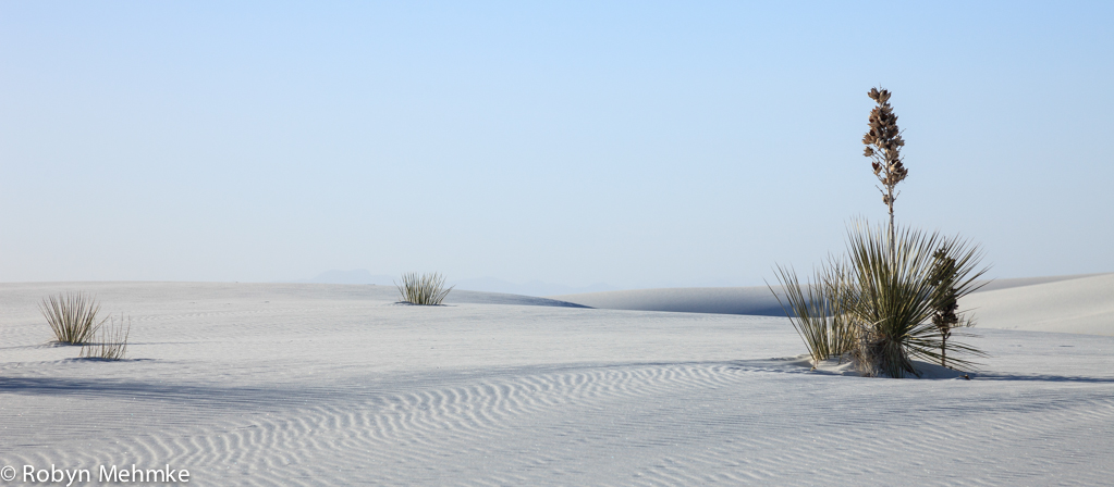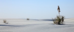 Hello, from White Sands. Wow, what a wonderful place to photograph! I have blisters on my feet from hiking here, but it has been worth every painful step. My knees are finally used to crawling up and down the dunes. I can not praise Craig Varjabedian enough for this fantastic experience. I have so many images to share. The dune area is 10miles by 20 miles, so it is big. We hiked in 2 1/2 miles one way the first day to get some good shot of ‘clean’ dunes, meaning with no human footprints. Â It is spring break here, so the dunes are covered with young people. They use ‘flying saucers’ to go down the snow-like dunes. What fun!! I am almost tempted to try it. Â The image here is of Yucca plants which are very abundant.