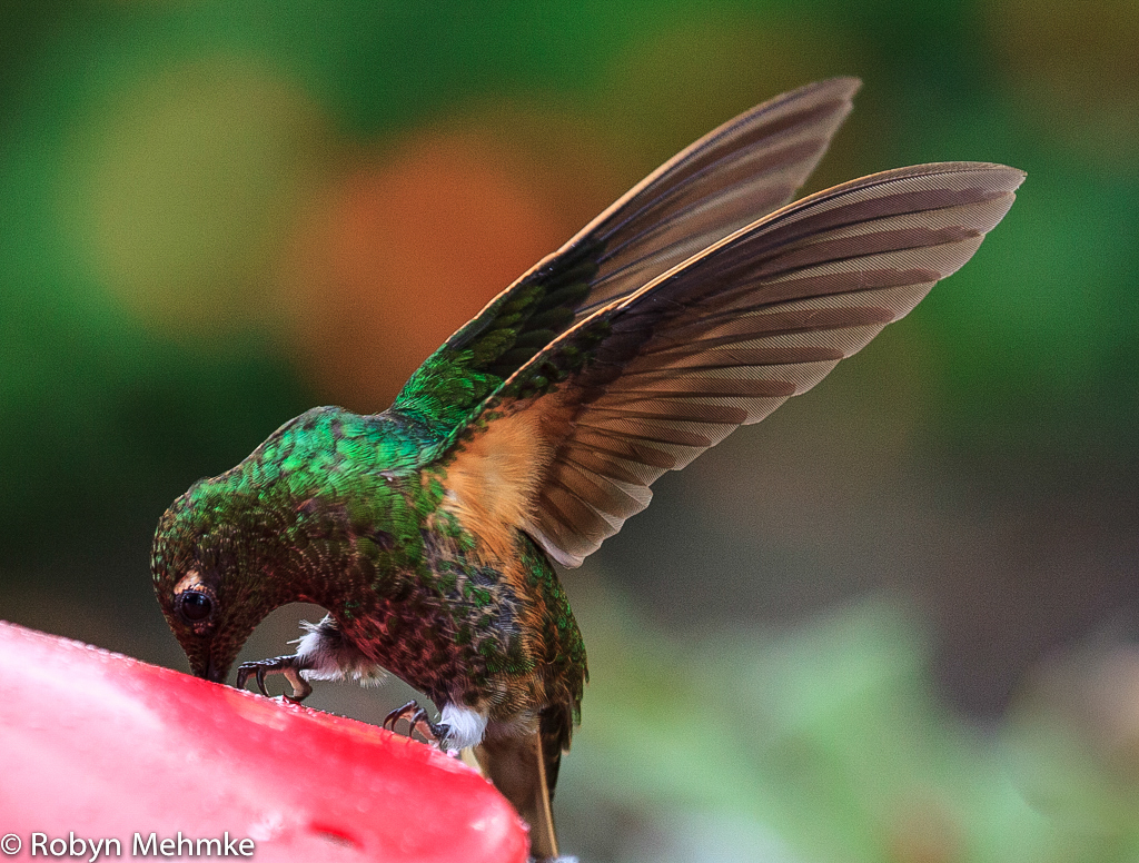 This little Glowing Puffleg is enjoying a bit of the sweet nectar that hummingbirds so enjoy.