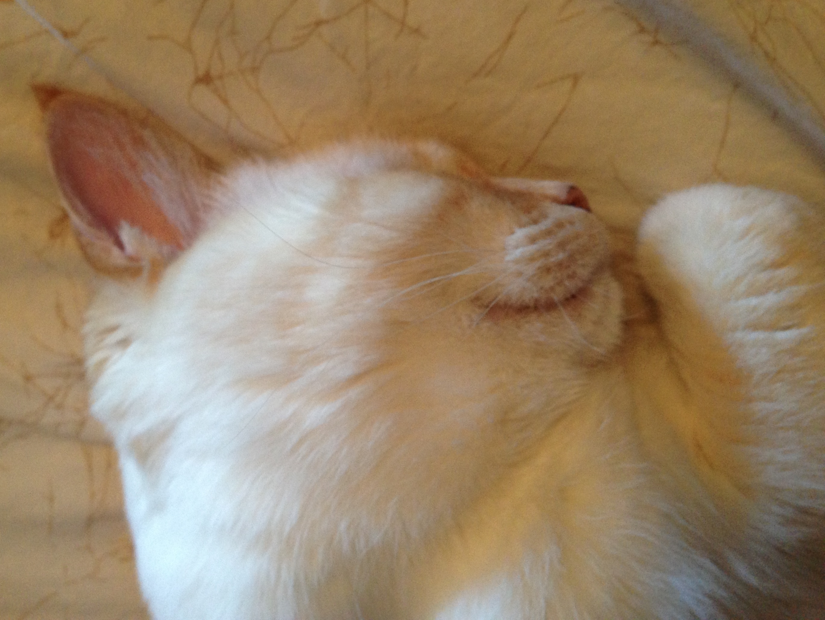 Jade loves it when someone will take a nap with her. Â Cats certainly know how how to relax. Â We Humans could certainly learn something from them.