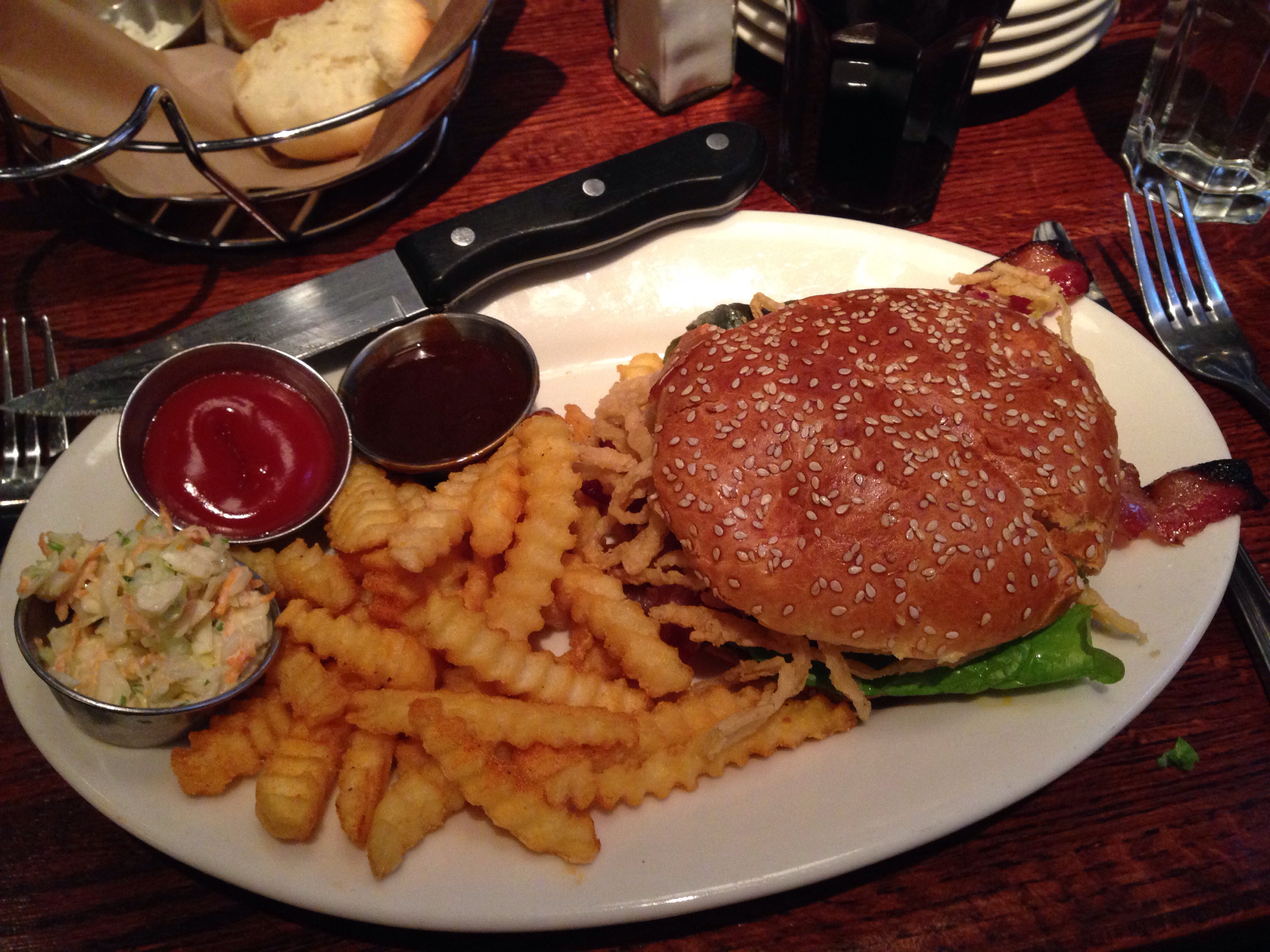 I had lunch at the Twin City Grill at the Mall of America. Actually had dinner there too. This is the Chicken Sandwich with BarbBQ sauce. Yummy!