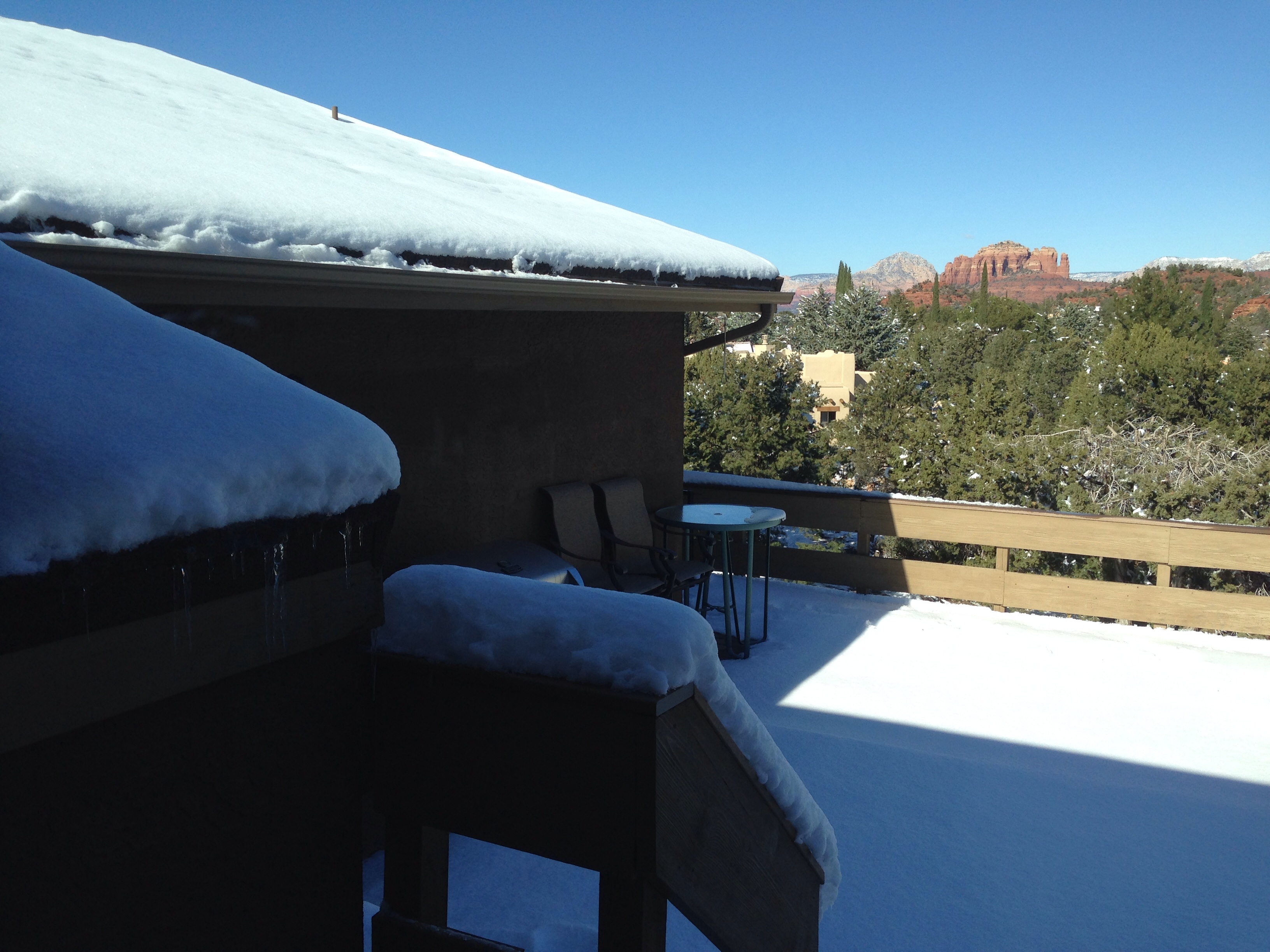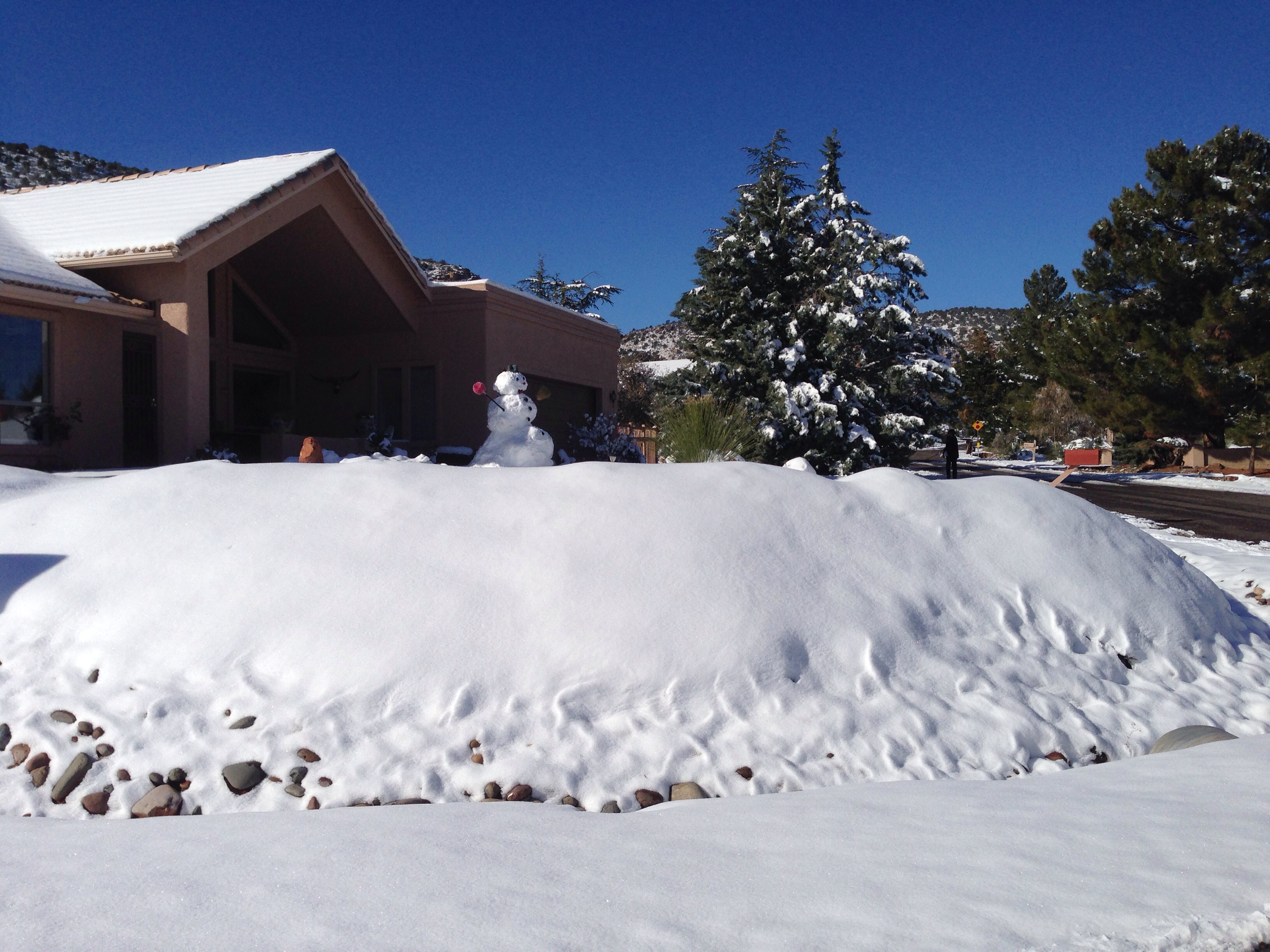 Wasn’t expecting this when we arrived in Arizona. 8 inches of snow complete with snowman.