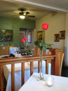 For our last big night out to dine, we went to Abbie’s Kitchen in Cottonwood. What a wonderful experience. It is very high end and a bit pricey, but the best we have eaten here. It is in a small 1920’s home what has been renovated with intimate dining rooms, I believe there were 8 tables and a commercial kitchen. There were three tables out in front on the porch to eat at when it is nice out too. Everything is made fresh and unbelievably tasty. The presentation is fabulous. Everything is served on fine china. Fresh roses on the tables were gorgeous. Abbie has a very impressive background of being a personal chef. She came around often to see how everything was. They serve only local wines. And we have visited the vineyards here. We had Creamy Mushroom Crepes and a Caesar Salad for appetizers. Then on to the main course of Red Bird Farms Chicken Picatta over Herbed House Made Fettuccini. Walter had a Bone In Ribeye with Mashed Potatoes. His potatoes were served in an onion. Mine was out of sight; best Picatta I have ever had. Walter found out his steak actually came from Nolan Ryan’s ranch in Texas. He said it was mighty tasty too. Of course, we had to indulge and have dessert. He had homemade Apple Pie with Ice Cream and I had a Poached Pear in Pastry. Oh, boy, were they ever good. We will be going back next year for sure.