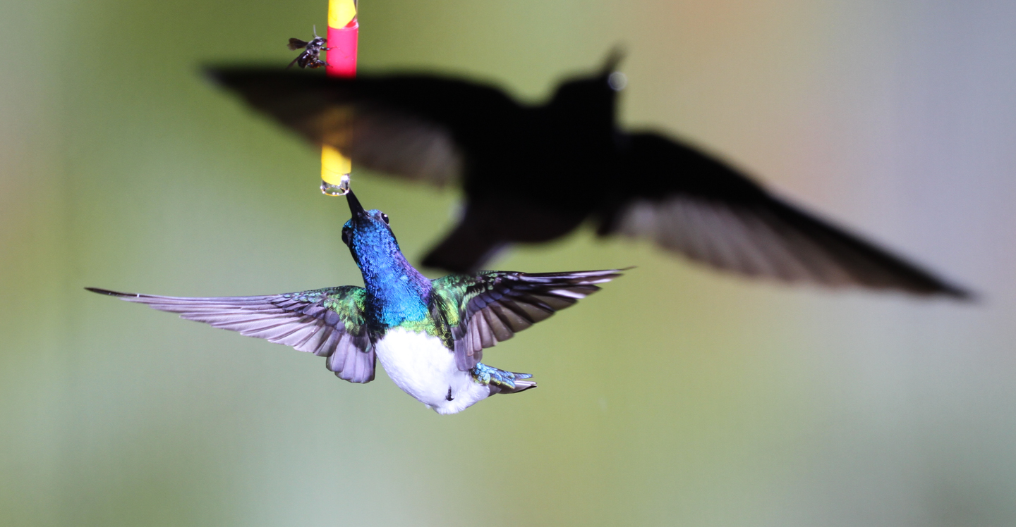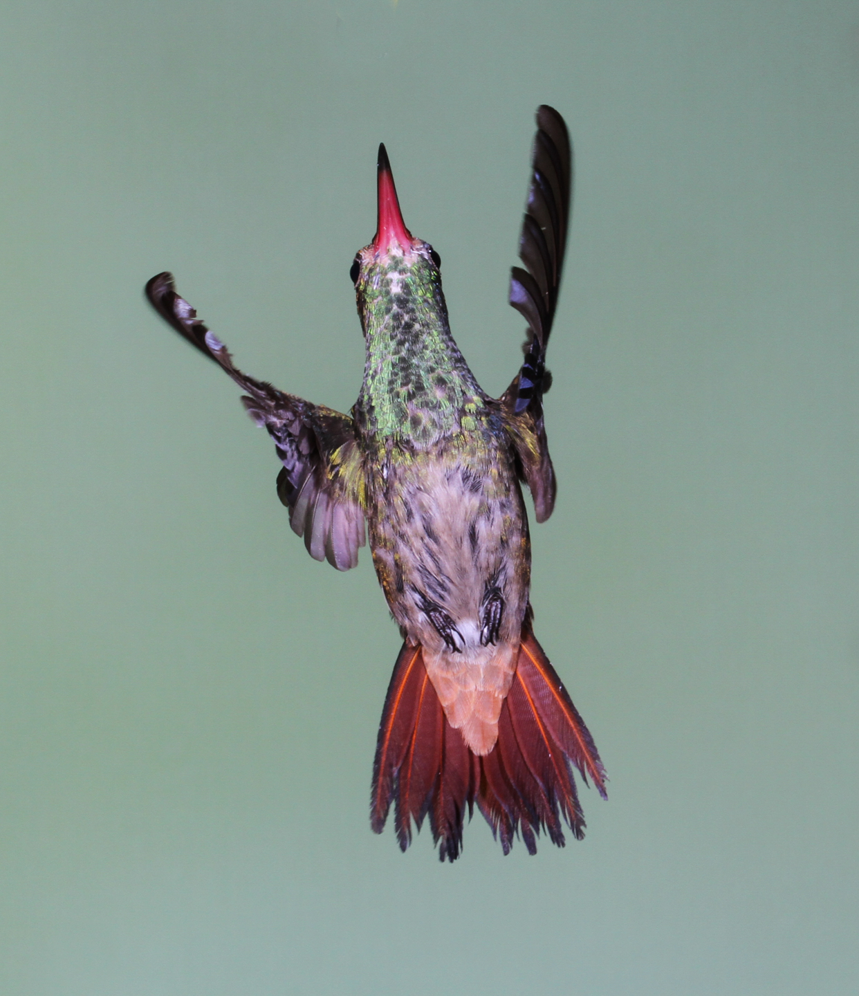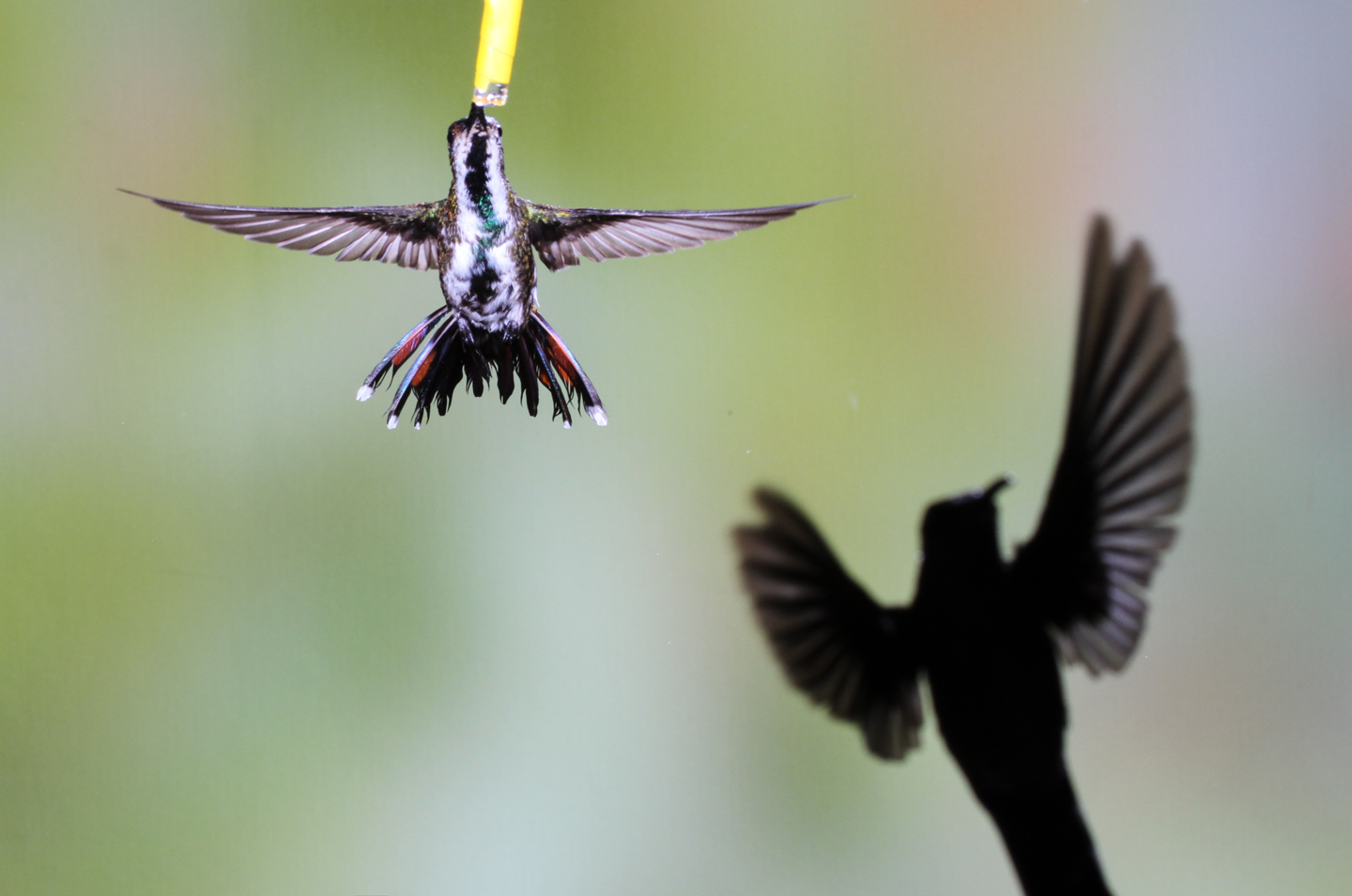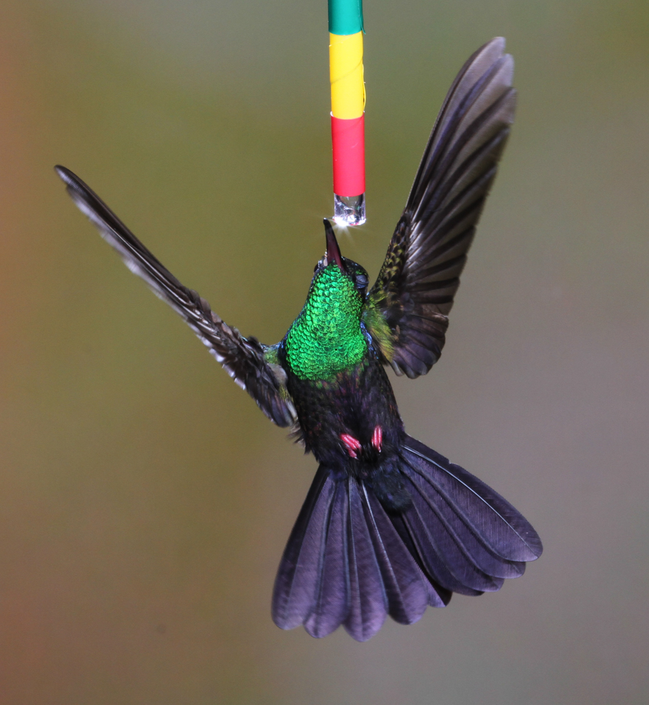 This is how to attract a hummingbird; fresh sugar water! This was one of the more difficult birds to attract. Notice his red legs and feet.