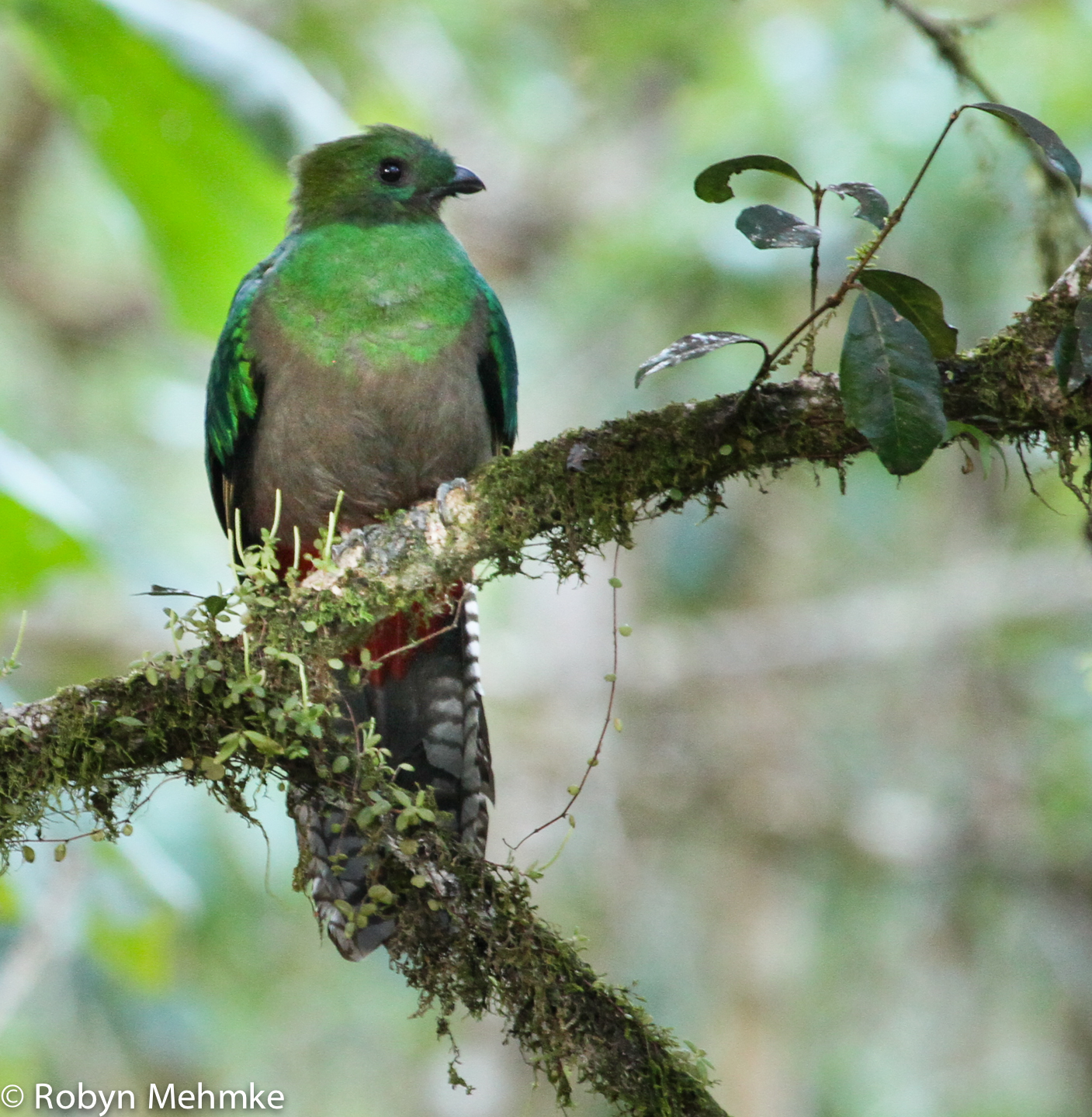 The last remote location we visited was the home to the Resplendent Quetzal. That bird hangout is quite the challenge to find. And then you wait and wait and hope to get a glimpse of this glorious bird. I was very lucky to get to capture images three times, in fact. First up is the female. Photographing these birds is a challenge, as they never come out of  the shadows deep in the forest, to pose.
