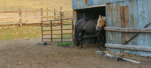 Sure looks like this could be a horse of two colors, doesn’t it? It’s actually one of our horses(gold) and Brooke’s(black) hanging out in the barnyard.