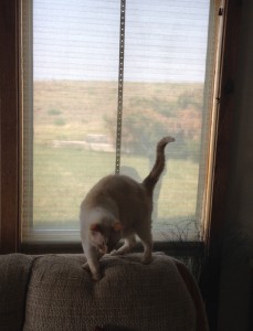 This was Jade greeting me when I arrived home from Vegas. What in the world are you going crazy about our that window? iPhone photo.