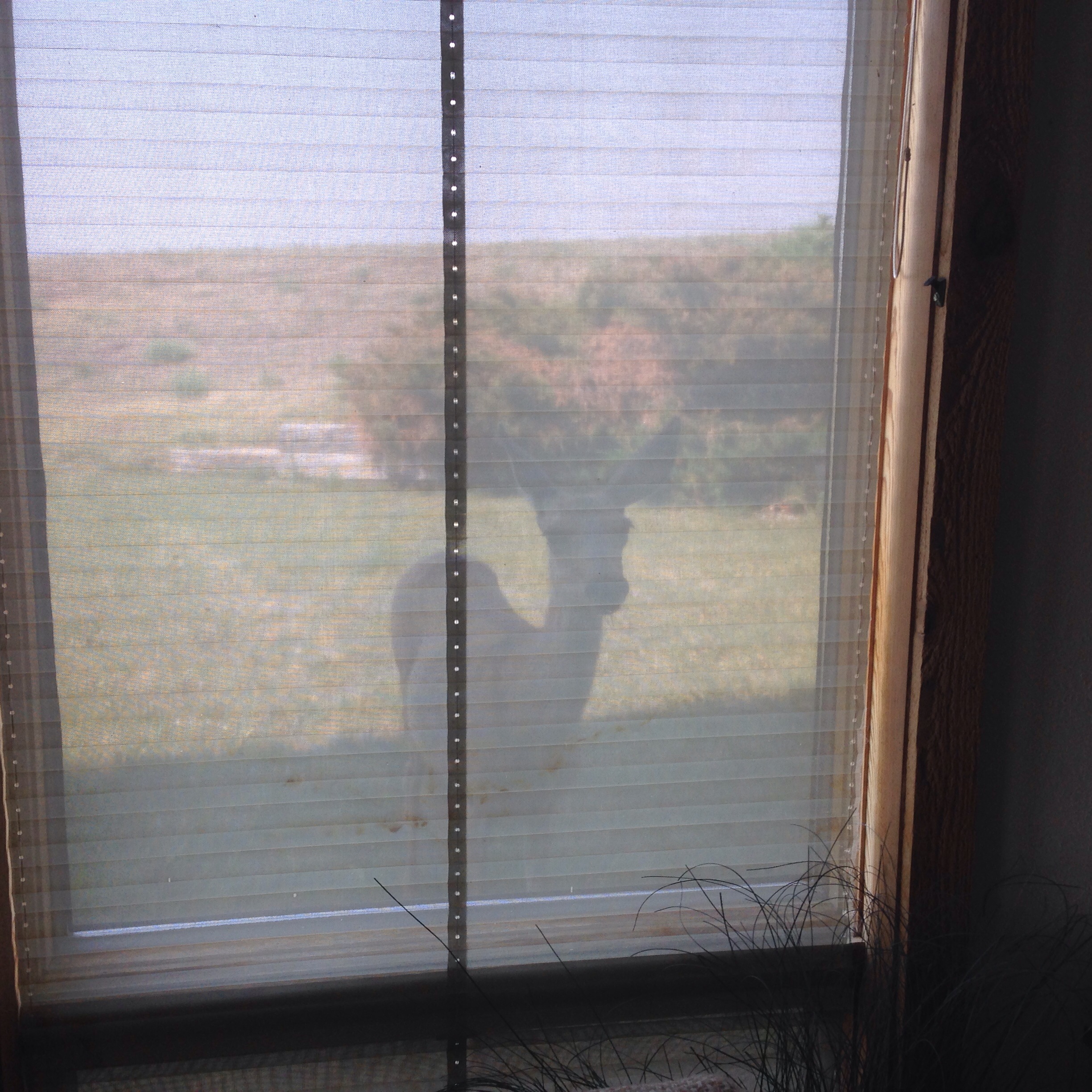 So this is what Jade was upset about. A doe was keeping cool in the shade right outside the window.
