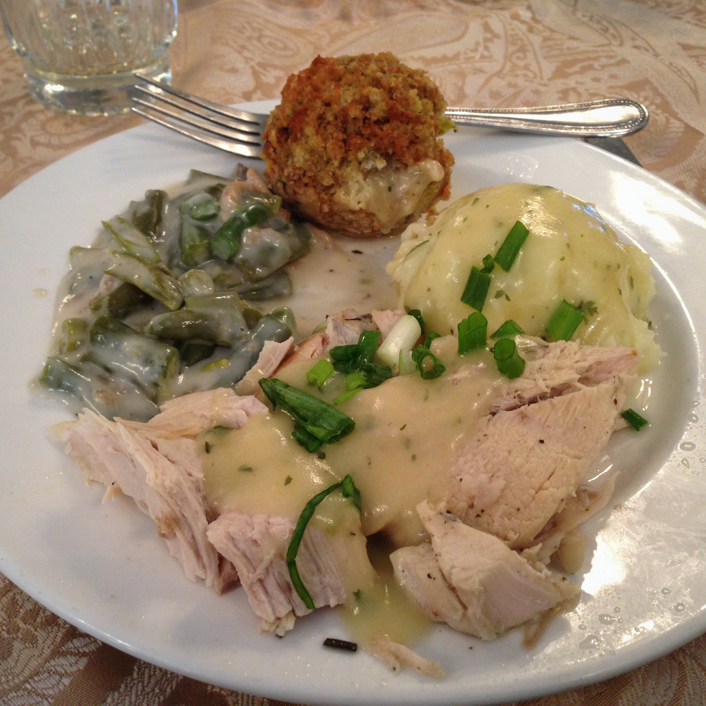 We had quite the feast for the main dish; turkey, mashed potatoes, dressing, gravy, and green bean casserole.