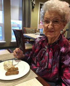 We joined Mom for Easter breakfast yesterday. She certainly seemed to enjoy it and ate her entire plateful. No eggs or oatmeal for Mom though, just lots of coffee.