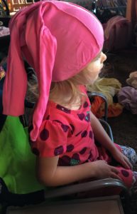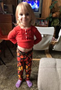 Going through old clothes to see if they fit. Now, Granddaughter, that is not where tights go…