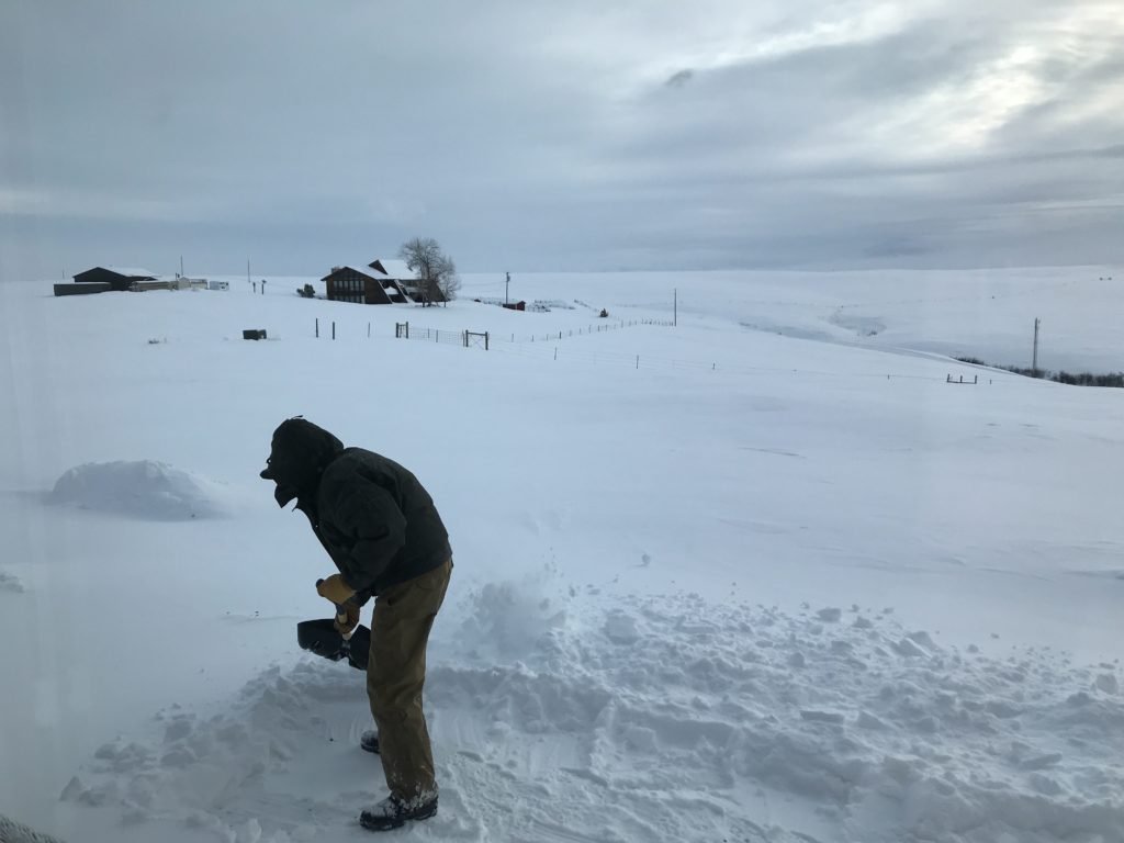 Before the snow blower arrived. Look who is out walking in that blowing snow(left side by the hanger). Time to get the 4 wheel out. That’s just the very top of the water hydrant sticking out of the snow on the right side. Weather person says a big snow event this coming week.