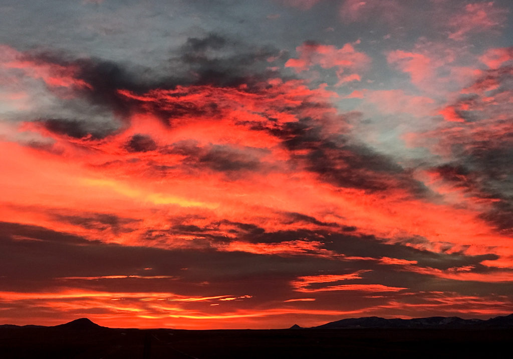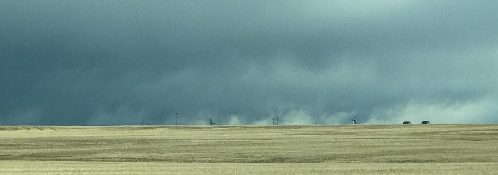 Here comes that forecast snow. The Highwoods and Belt Butte will get it first. It is still snowing hard here and blowing. Yuck!