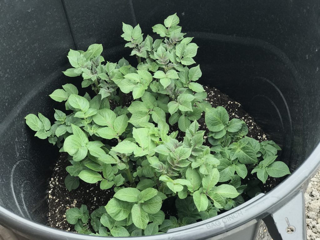 My garbage can potatoes are sure growing. Not much farther to reach the top of the can. I add more soil each time I get 4 inches more growth. I hope I get a good crop. My other ones are all up in my big garden too. I finished planting it today before the forecast coming rain.
