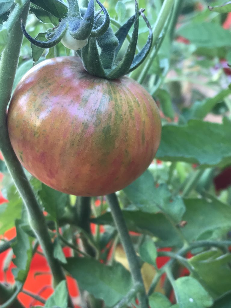 I think this is a Dragon’s Eye tomato. One of the 20 plants that I got from my friend, Charity.
