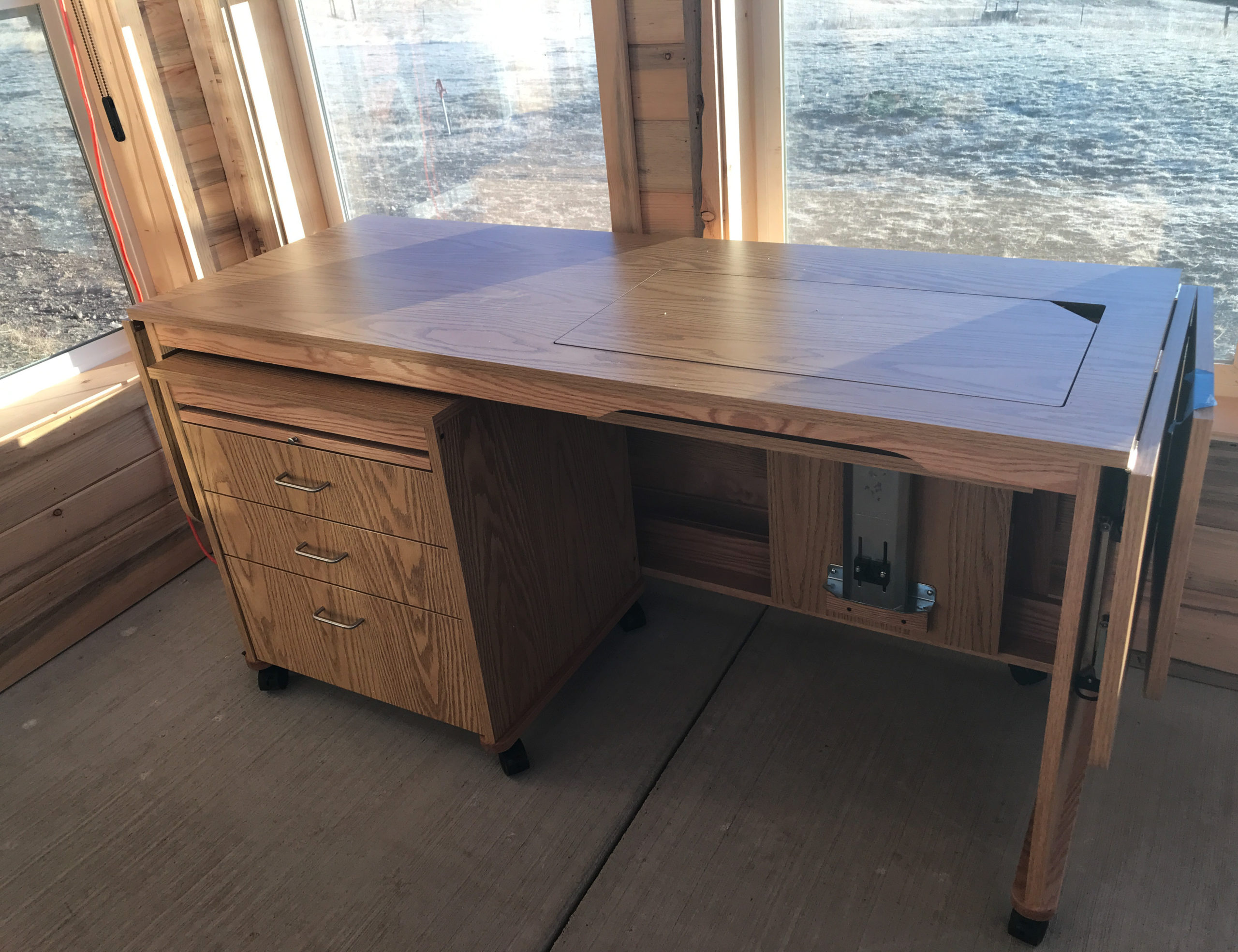 Walt surprised me this morning with this beautiful handmade sewing/craft table for my birthday! Can’t wait to try it out! It is huge. The back folds up and so do the sides to make it twice as big a workspace!