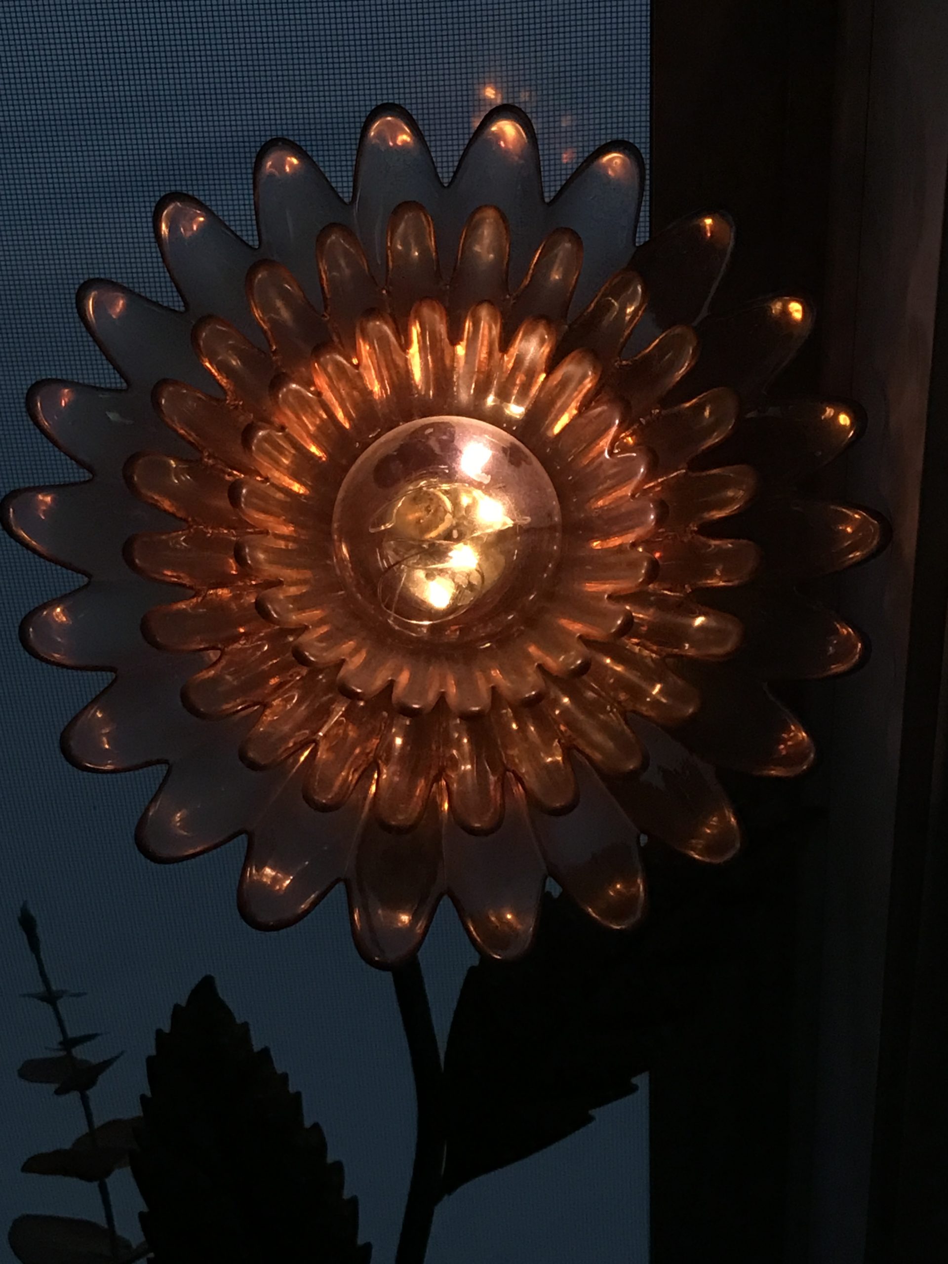 Here is my solar powered flower light. Doesn’t last very long, but pretty cool when it works.
