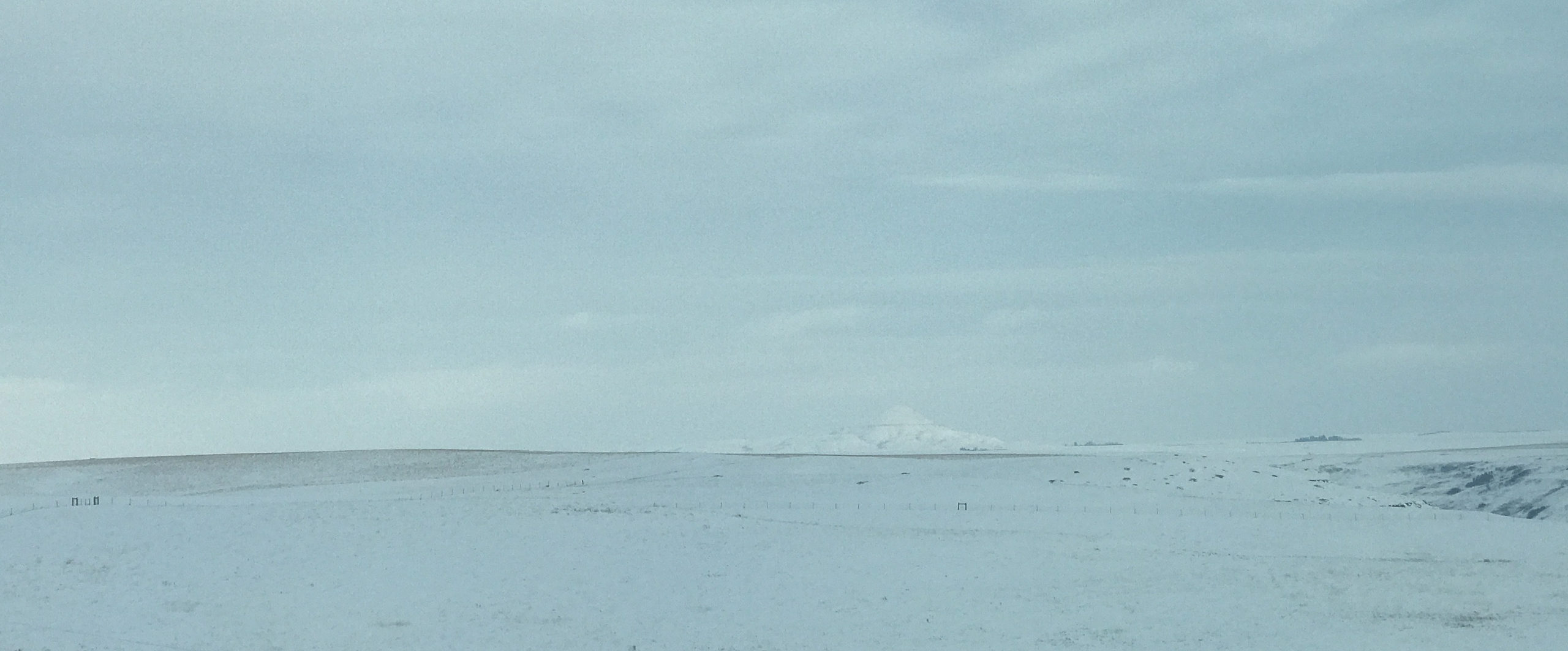 You can’t see the Highwoods and Belt Butte sure blend in to the hazy white surroundings.