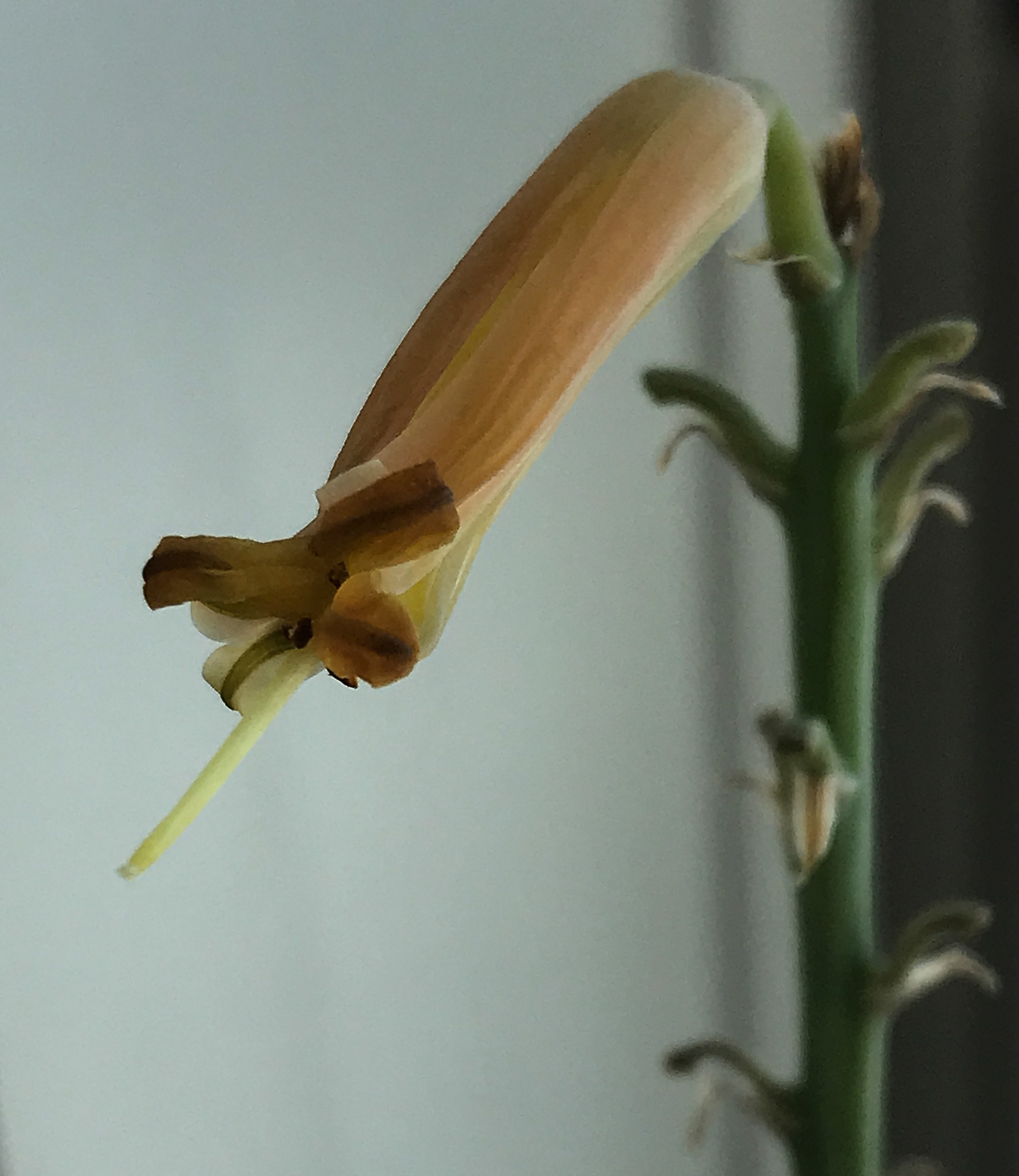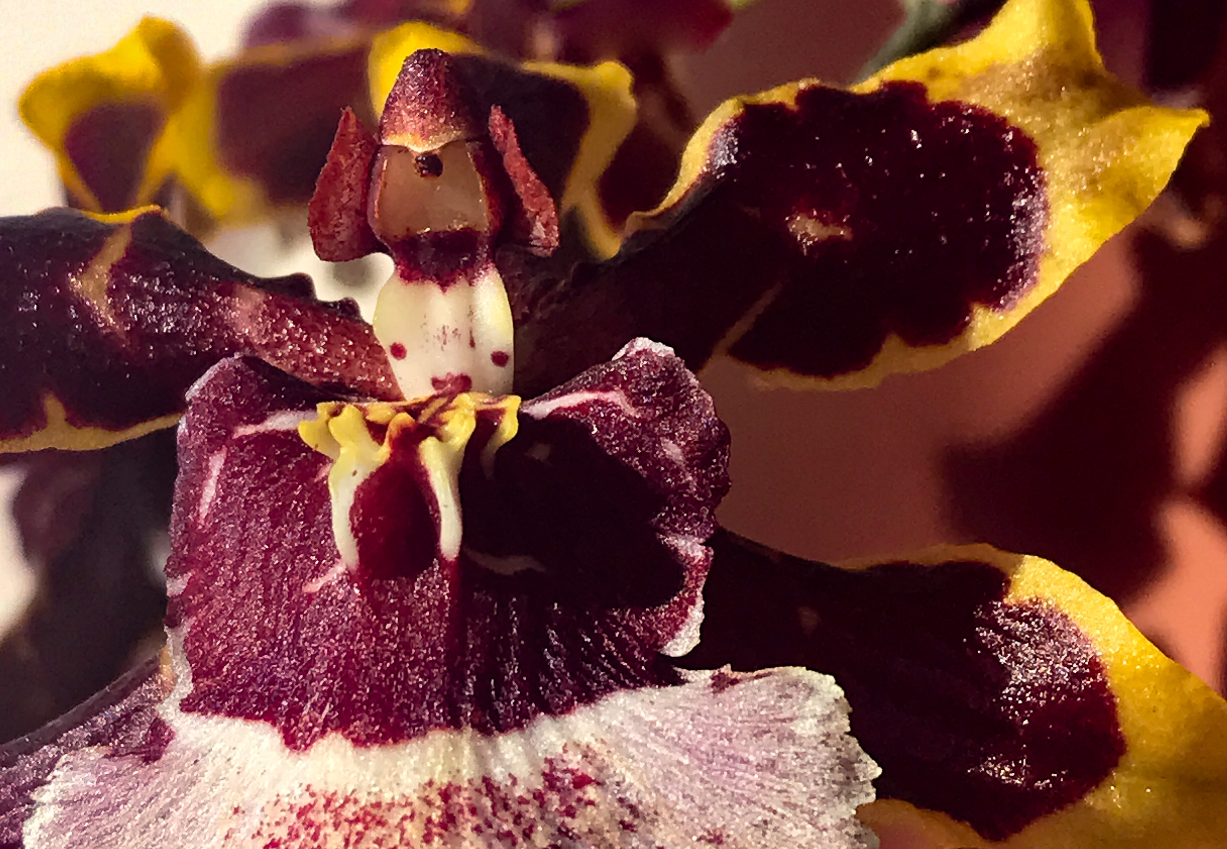 This orchid bloom is sure hanging on for a long time. It has been almost a month. It always amazes me how much the center looks like a little soldier.