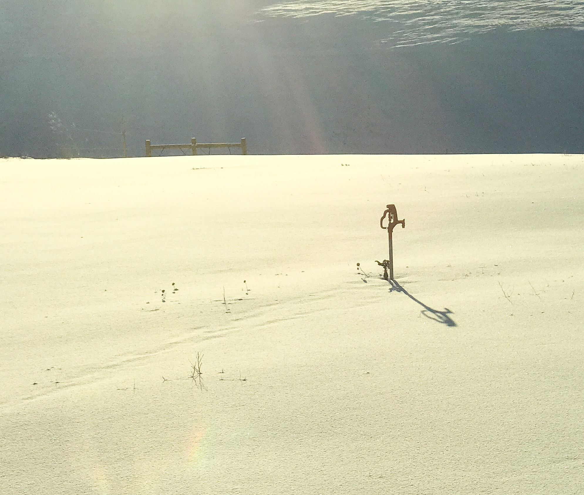 This was taken yesterday before the wind started blowing the snow around. Different story today. Golden light of morning.