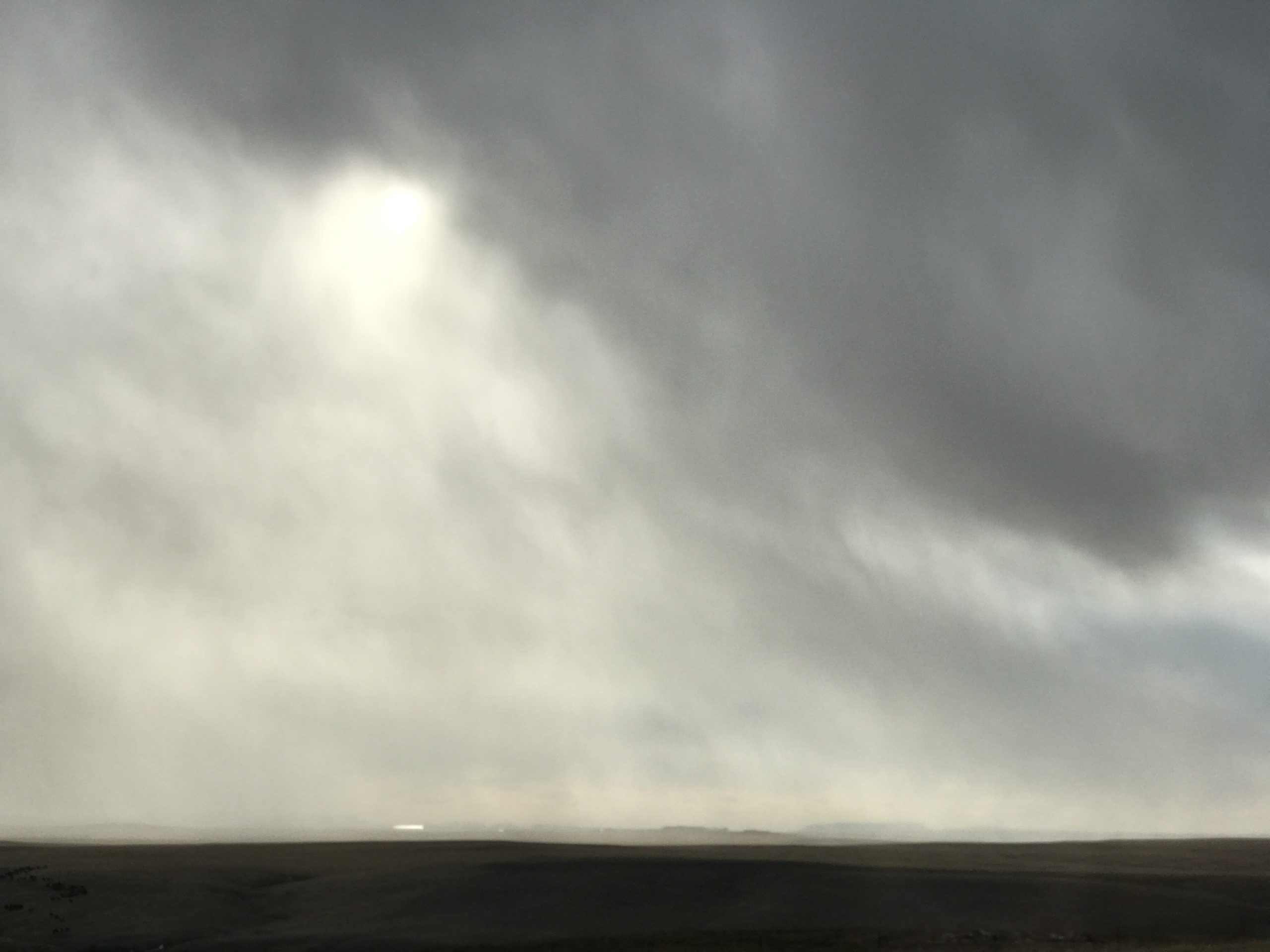 Taken a couple of days ago, looking West. That shiny object on the horizon is a building at the Hutterite colony. Great Falls is to the right.