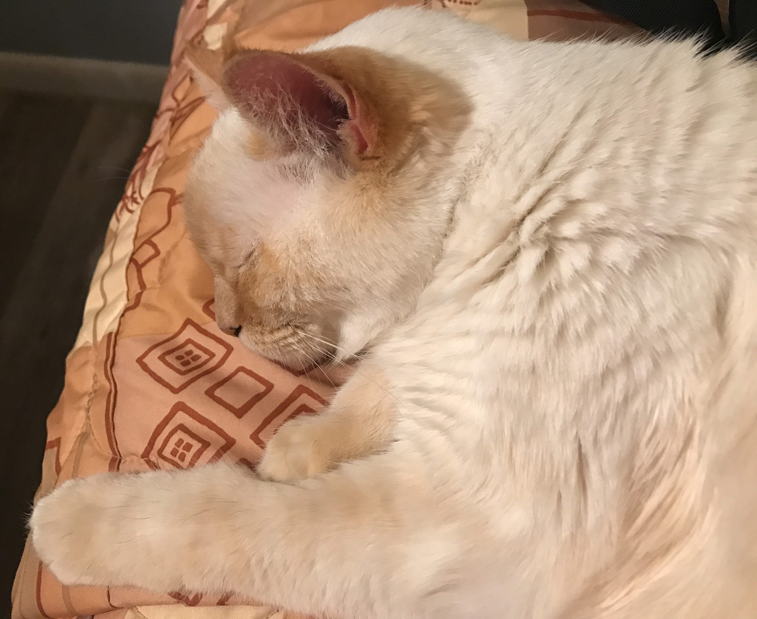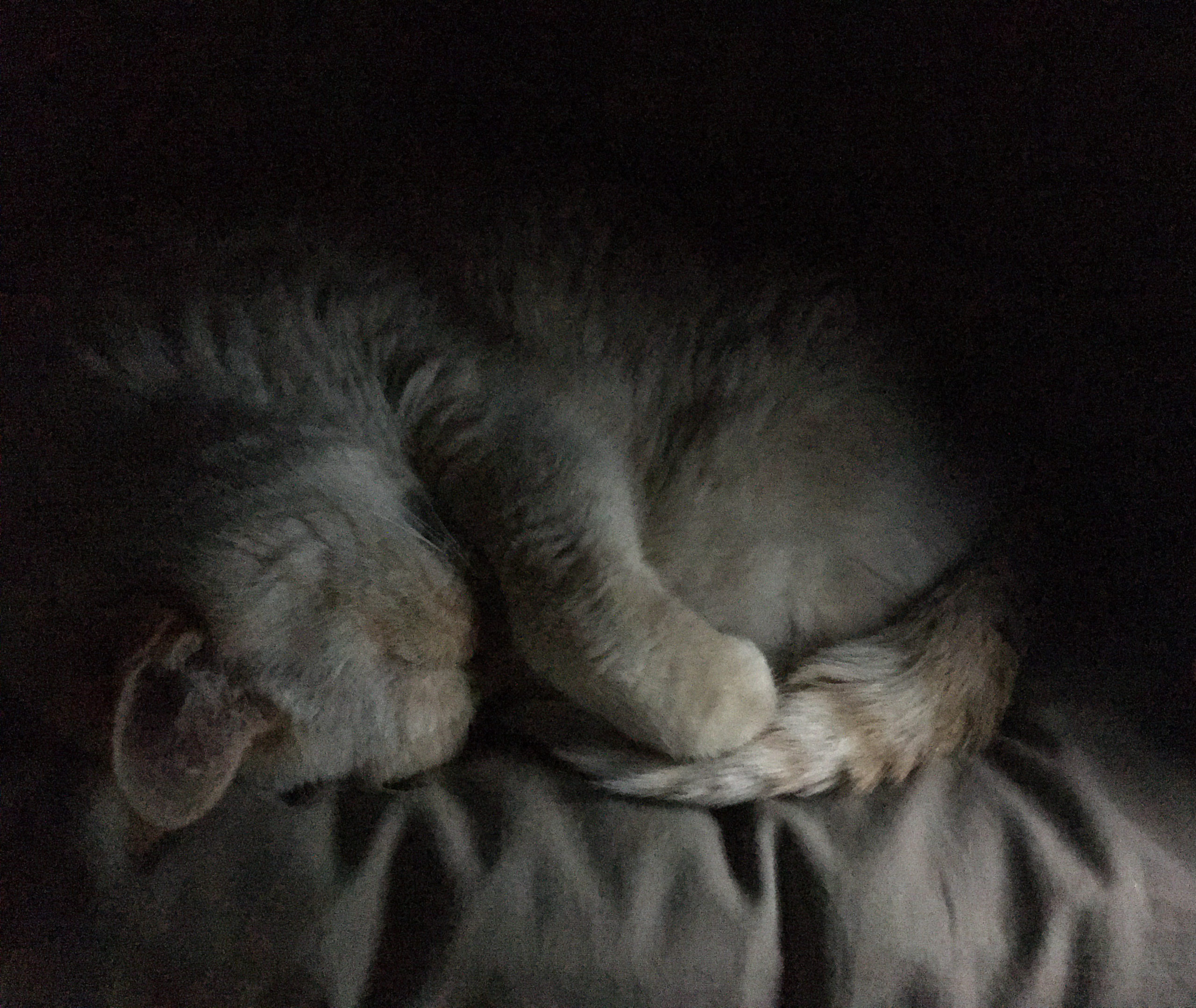 Jade had a long 7 hours in her crate yesterday. She is enjoying a nap at the motel.