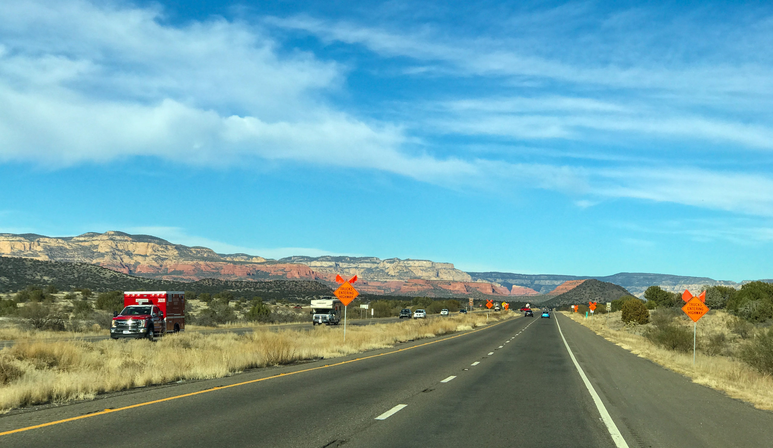 Here we are approaching the red rock country of Sedona on our way to a veterinarian Ppointment